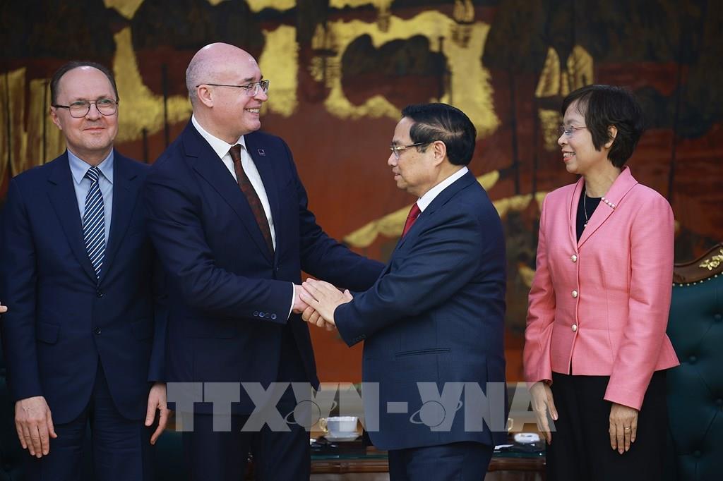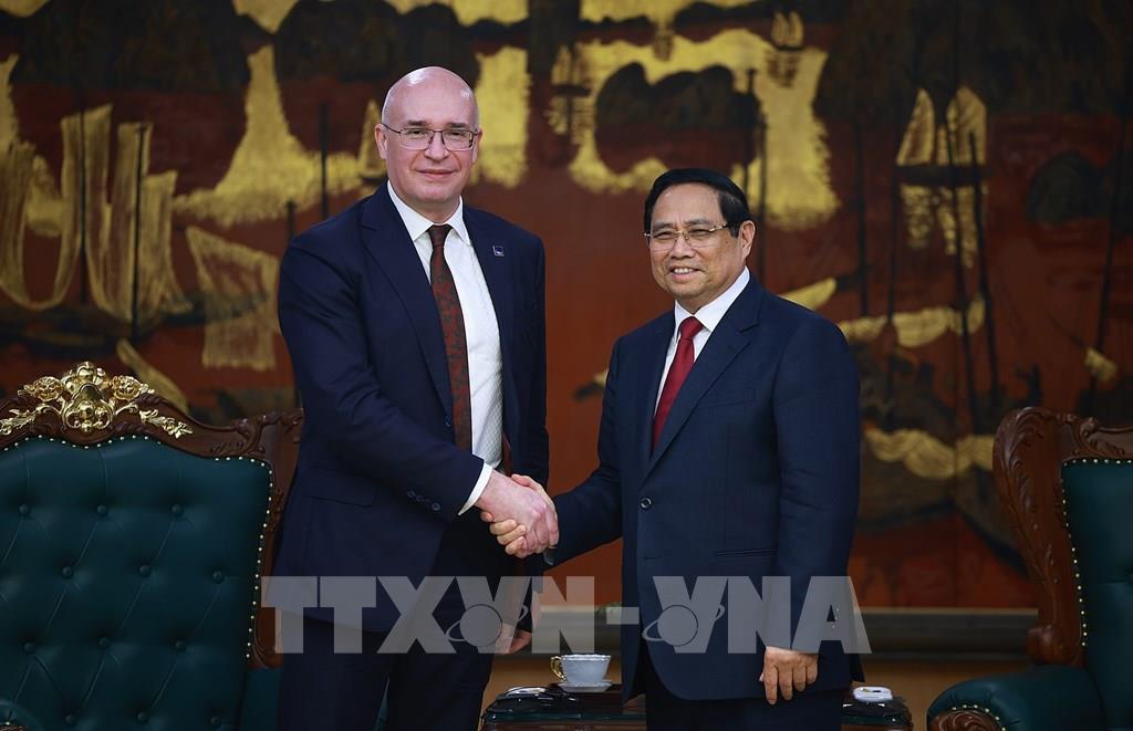 Thủ tướng Phạm Minh Chính tiếp Tổng giám đốc Hãng Thông tấn TASS (Liên bang Nga) Andrey Kondrashov. Ảnh: Dương Giang-TTXVN