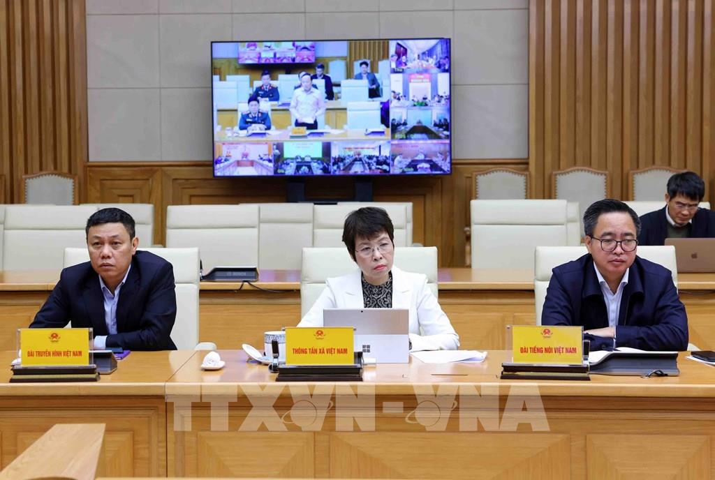 Các điểm cầu Trụ sở Chính phủ, Gia Lai, Khánh Hoà, Đắk Lắk, Lâm Đồng, Tây Ninh và Quân khu 5 tham gia họp trực tuyến. Ảnh: TTXVN