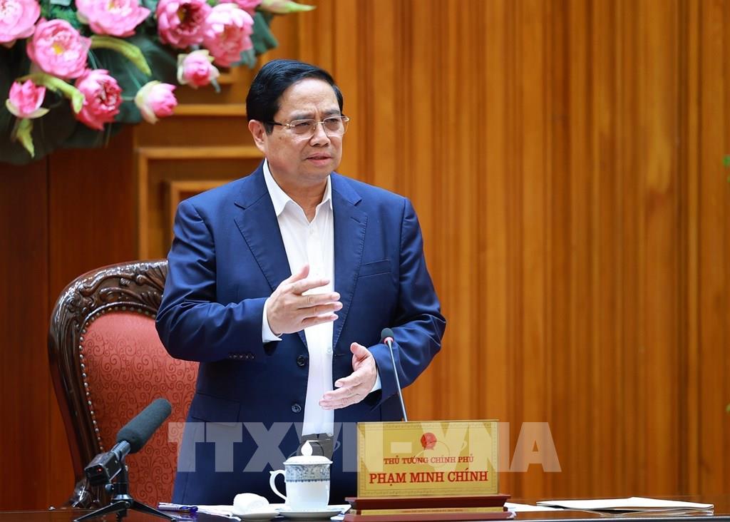Thủ tướng Phạm Minh Chính chủ trì làm việc với lãnh đạo Bộ Quốc phòng về phát triển công nghiệp quốc phòng. Ảnh: Dương Giang-TTXVN