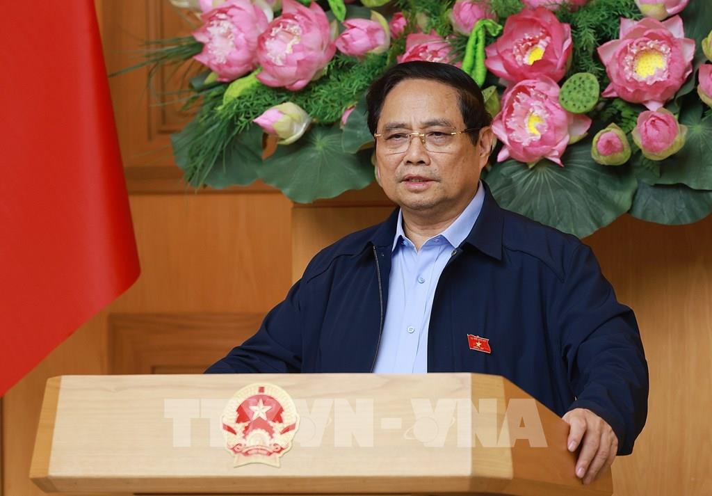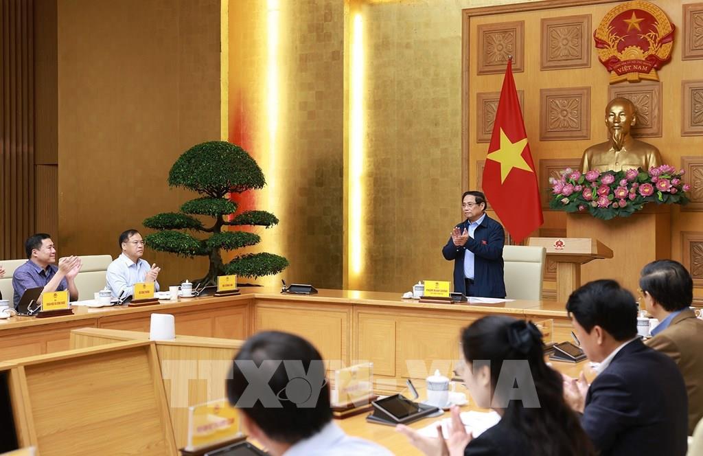 Thủ tướng Phạm Minh Chính chủ trì cuộc họp về phát triển sàn dữ liệu tại Việt Nam. Ảnh: Dương Giang-TTXVN
