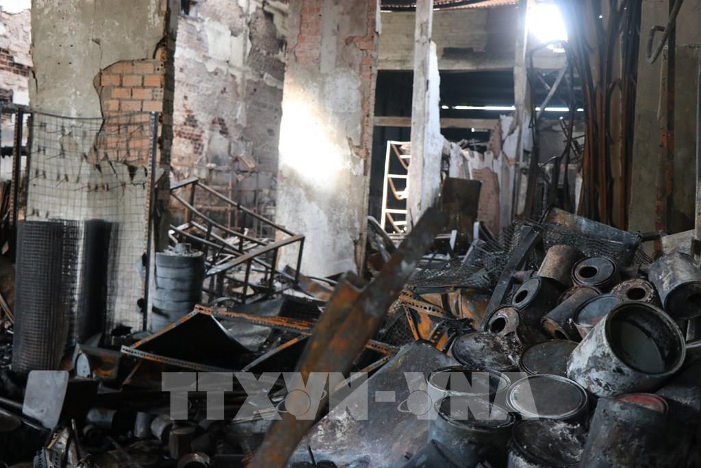 Vật dụng sinh hoạt và hàng hóa trong căn nhà bị thiêu rụi hoàn toàn. Ảnh: Nguyên Dung - TTXVN