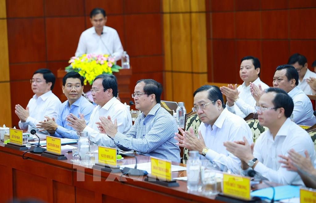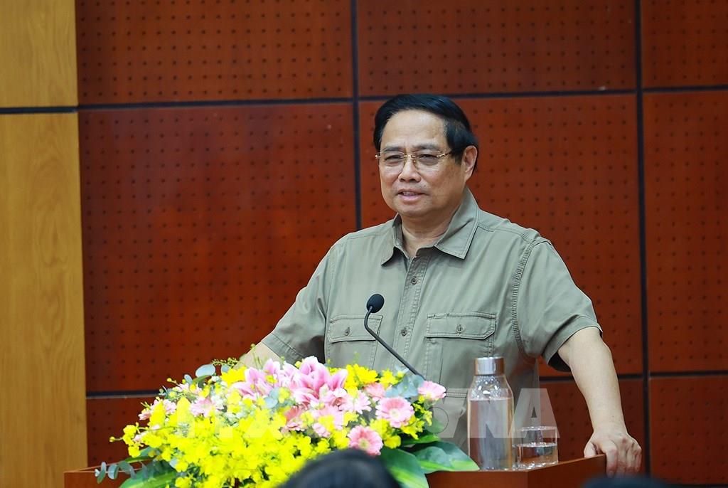 Thủ tướng Phạm Minh Chính làm việc với Ban Thường vụ Tỉnh uỷ Tây Ninh. Ảnh: Dương Giang-TTXVN