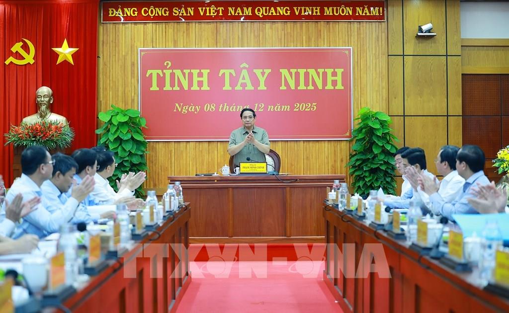 Chiều 8/12, nhân chuyến công tác tham dự Lễ khai trương cặp Cửa khẩu quốc tế Tân Nam - Meun Chey, Thủ tướng Chính phủ Phạm Minh Chính và Đoàn công tác đã làm việc với Ban Thường vụ Tỉnh uỷ Tây Ninh về tình hình kinh tế - xã hội năm 2025; phương hướng, nhiệm vụ năm 2026 và giải quyết các đề xuất, kiến nghị của tỉnh thúc đẩy Tây Ninh phát triển nhanh, bền vững.