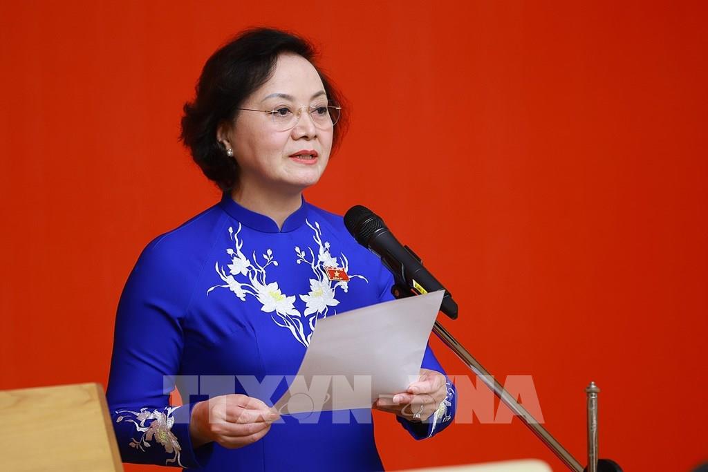 Đồng chí Phạm Thị Thanh Trà, Phó Thủ tướng Chính phủ thay mặt các đồng chí được bổ nhiệm, phát biểu nhận nhiệm vụ. Ảnh: Dương Giang-TTXVN