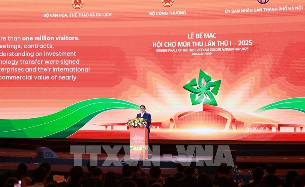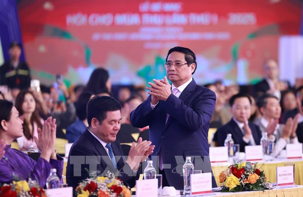 Thủ tướng Phạm Minh Chính dự Lễ bế mạc Hội chợ Mùa thu lần thứ nhất - năm 2025. Ảnh: Dương Giang-TTXVN