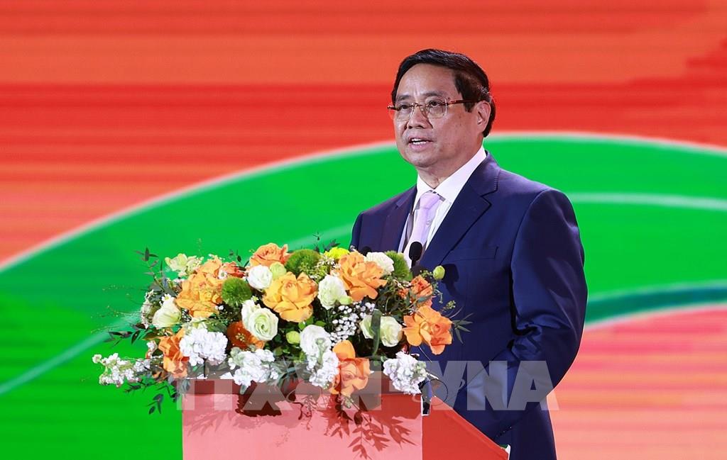 Thủ tướng Phạm Minh Chính phát biểu bế mạc Hội chợ Mùa thu lần thứ nhất - năm 2025. Ảnh: Dương Giang-TTXVN