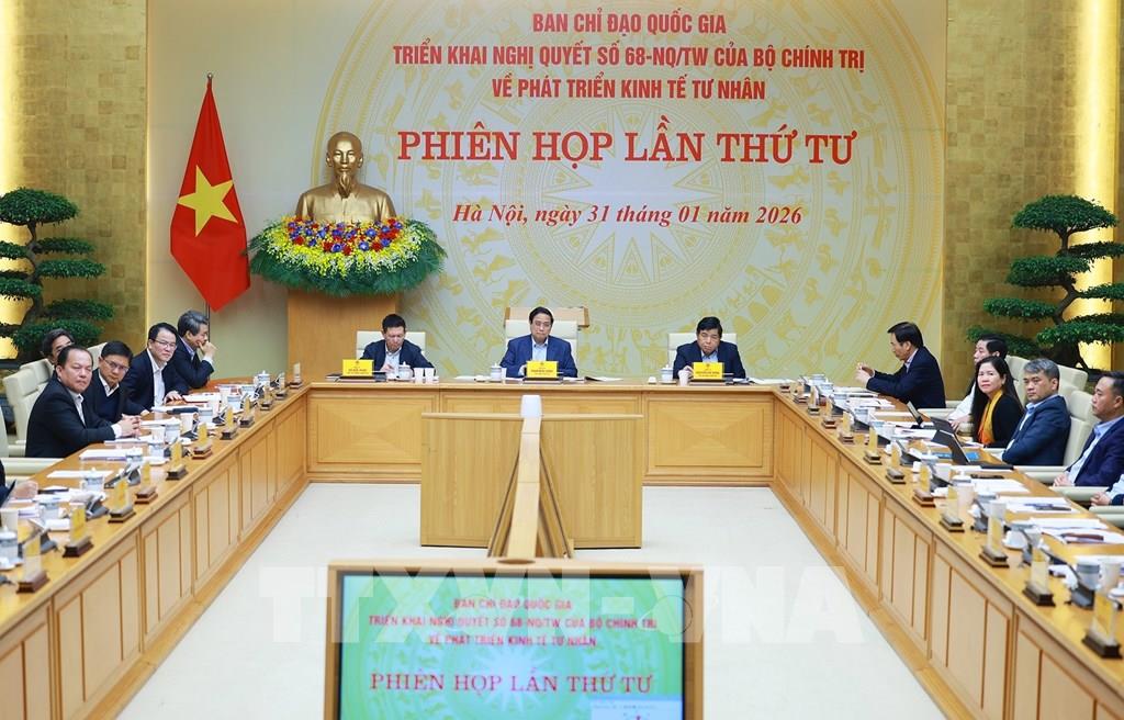 Sáng 31/1, Thủ tướng Phạm Minh Chính, Trưởng Ban Chỉ đạo quốc gia triển khai Nghị quyết số 68-NQ/TW của Bộ Chính trị về phát triển kinh tế tư nhân, chủ trì Phiên họp lần thứ tư của Ban Chỉ đạo.