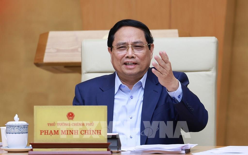 Thủ tướng Phạm Minh Chính chủ trì Phiên họp Chính phủ chuyên đề về Trung tâm Tài chính quốc tế tại Việt Nam. Ảnh: Dương Giang-TTXVN