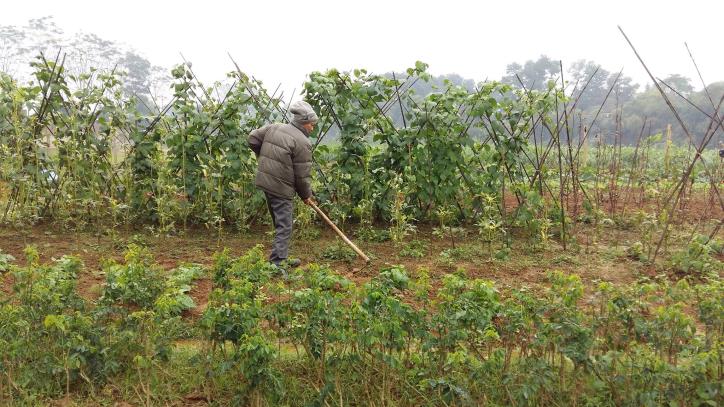 Ông Giao chuẩn bị những luống rau sạch cho dịp Tết Nguyên đán. Ảnh: Đức Dũng/BNEWS.