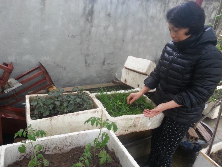 Cùng cảnh có cháu nhỏ, cô Lê Thị Lý đang sống tại phố Bạch Mai chia sẻ: "Mình già rồi ăn gì cũng được, chỉ thương bọn trẻ con mỗi ngày có 2 bát cháo thôi mà phải ăn lẫn với hóa chất". Vì thế nhà cô quyết định mua ít thùng xốp về để tự trồng rau sạch.