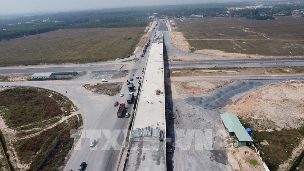 Thi công Đường 25B đoạn giao với đường Vành đai 3 - Thành phố Hồ Chí Minh. Ảnh: Công Phong - TTXVN m