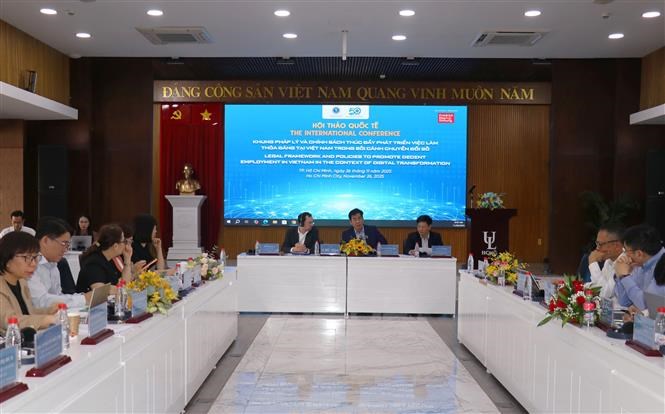 Chuyển đổi số đã và đang tác động đáng kể đến cấu trúc thị trường lao động. Các ngành nghề mới trong lĩnh vực công nghệ, dịch vụ số và kinh tế chia sẻ đang tạo ra nhiều cơ hội việc làm mới, nhưng cũng đặt ra yêu cầu cao về kỹ năng nghề nghiệp và khả năng thích nghi của người lao động. Đây là nhận định chung của các chuyên gia, nhà khoa học, giảng viên từ nhiều trường đại học và các cơ quan quản lý nhà nước, tổ chức xã hội, doanh nghiệp tại Hội thảo quốc tế “Khung pháp lý và chính sách thúc đẩy phát triển việc làm thỏa đáng tại Việt Nam trong bối cảnh chuyển đổi số", tại Thành phố Hồ Chí Minh vào sáng 26/11, do Tổ chức Friedrich-Ebert-Stiftung (FES-Đức) phối hợp cùng Trường Đại học Luật Thành phố Hồ Chí Minh tổ chức.
