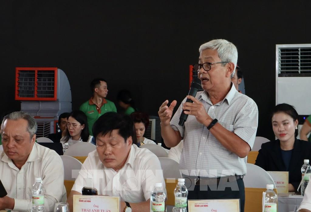 Ông Nguyễn Quang Bình, chuyên gia thị trường cà phê chia sẻ thông tin tại hội thảo. Ảnh: Xuân Anh - TTXVN
