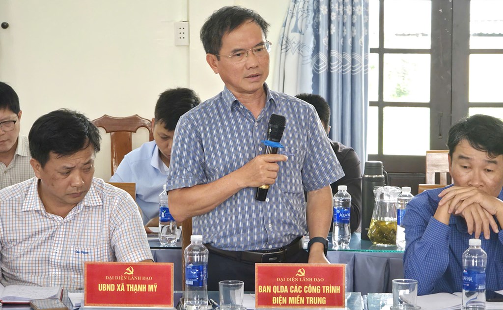 Báo cáo tại buổi làm việc, ông Nguyễn Đình Thọ - Phó Giám đốc Ban Quản lý dự án các công trình điện miền Trung (CPMB) cho biết: Dự án đường dây 220kV Thạnh Mỹ - Duy Xuyên do Tổng công ty Truyền tải điện Quốc gia (EVNNPT) làm chủ đầu tư; CPMB được giao quản lý, điều hành dự án; Công ty Truyền tải điện 2 tiếp nhận vận hành sau khi hoàn thành.