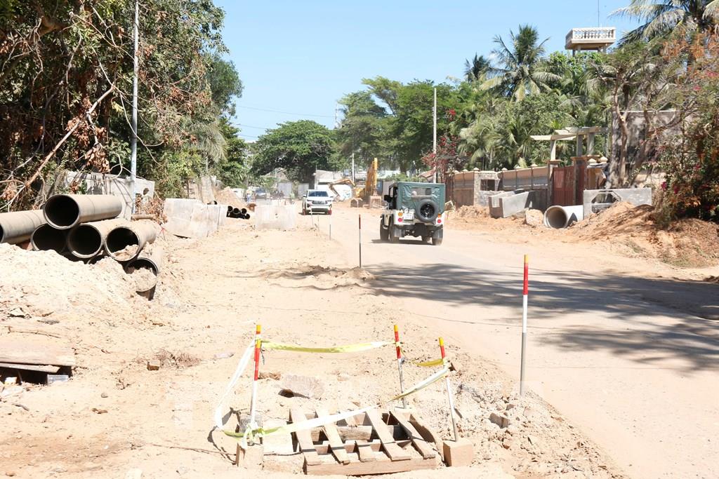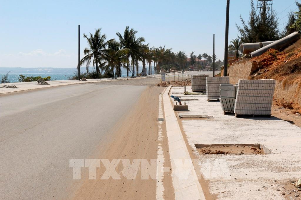 Dự án nâng cấp đường Mũi Né (đoạn từ khu du lịch Hoàng Ngọc đến ngã ba Làng Chài) thi công rất chậm, đạt khối lượng hơn 32%. Ảnh: Nguyễn Thanh - TTXVN