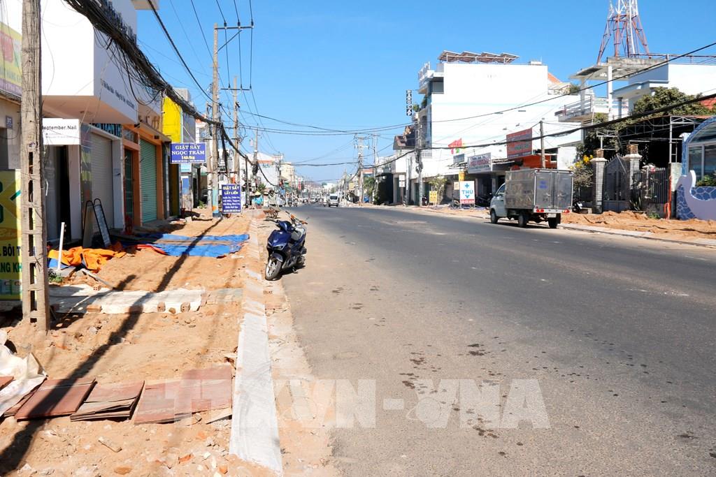 Một đoạn đường Nguyễn Đình Chiểu thuộc Dự án nâng cấp đường Mũi Né (đoạn từ khu du lịch Hoàng Ngọc đến ngã ba Làng Chài) chuẩn bị lát vỉa hè. Nguyễn Thanh - TTXVN