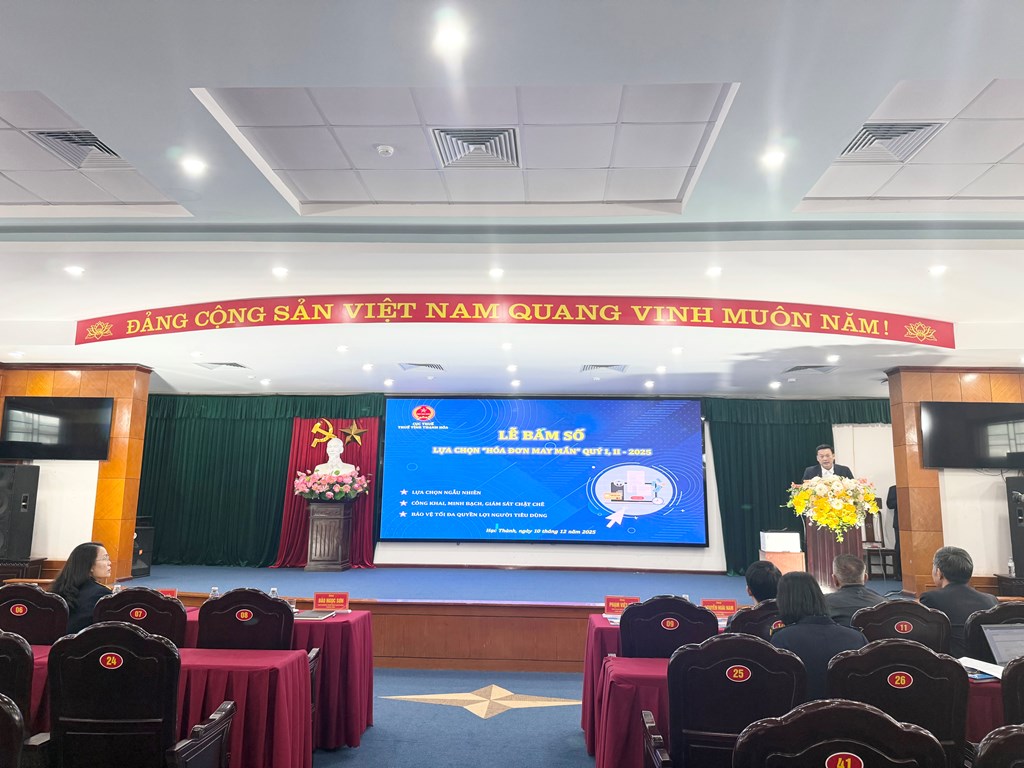 Chương trình hóa đơn may mắn là giải pháp có ý nghĩa thiết thực nhằm khuyến khích và hình thành thói quen tiêu dùng thông minh của người dân lấy hóa đơn khi mua hàng hóa, dịch vụ, đồng thời nâng cao ý thức chấp hành pháp luật thuế của các tổ chức, cá nhân kinh doanh và nâng cao hiệu quả công tác thuế.Căn cứ dữ liệu hóa đơn điện tử từ ngày 1/1/2025 đến ngày 30/6/2025, Chương trình đã thực hiện quay số bằng phần mềm để tìm ra hóa đơn trúng thưởng. Sau quá trình quay số công khai, minh bạch, dưới sự giám sát chặt chẽ của Hội đồng giám sát, tại kỳ quay thưởng quý I và quý II năm 2025 đã tìm ra được 44 Hóa đơn may mắn quý I năm 2025 và 44 Hóa đơn may mắn quý II năm 2025, với cơ cấu giải thưởng mỗi quý là: 1 giải nhất, trị giá 10.000.000 đồng; 3 giải nhì, trị giá 5.000.000 đồng/giải; 5 giải ba, trị giá 3.000.000 đồng/giải; 35 giải khuyến khích, trị giá 2.000.000 đồng/giải.- Từ khóa :