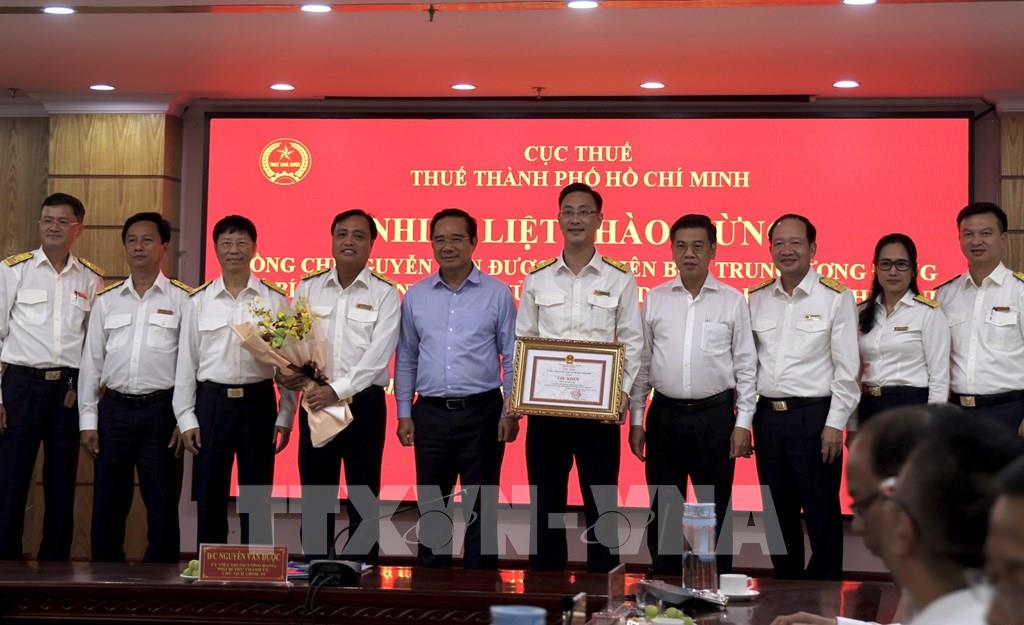 Chủ tịch UBND TP. Hồ Chí Minh Nguyễn Văn Được biểu dương cơ quan Thuế thành phố có nhiều nỗ lực trong nhiệm vụ thu ngân sách nhà nước năm 2025. Ảnh: Hứa Chung-TTXVN