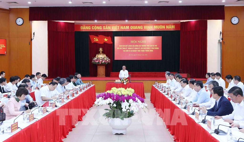 Thường trực Ban Bí thư hoan nghênh các địa phương, đơn vị, nhất là cơ sở xã, phường đã làm tốt, góp phần vào thành công chung của cuộc bầu cử, tạo không khí phấn khởi, tin tưởng trong nhân dân. Thường trực Ban Bí thư cho rằng, kết quả này thể hiện sự hiệu quả của việc vận hành mô hình chính quyền địa phương 2 cấp. Đồng chí Trần Cẩm Tú điểm lại những kết quả nổi bật trong ba tháng đầu năm 2026, trong đó có công tác chăm lo đời sống vật chất, tinh thần cho nhân dân dịp Tết Nguyên đán, đảm bảo an ninh trật tự, an toàn xã hội, nhiều hoạt động đối ngoại được tổ chức góp phần nâng cao uy tín và vị thế của Việt Nam trên trường quốc tế... * Tháo gỡ dứt điểm các dự án chậm tiến độ, khó khăn, vướng mắc Tại Hội nghị, các đại biểu phát biểu thảo luận, bổ sung, làm rõ thêm những nhiệm vụ trọng tâm Quý II/2026. Thực hiện ý kiến chỉ đạo của Ban Bí thư, đồng chí Tổng Bí thư, Chủ tịch nước Tô Lâm, đồng chí Trần Cẩm Tú nêu rõ, Quý II/2026, khối lượng công việc rất nhiều, cấp bách, đòi hỏi sự khẩn trương, Thường trực Ban Bí thư đề nghị các tỉnh uỷ, thành uỷ, các cơ quan, đơn vị phát huy tinh thần tiên phong, gương mẫu, đổi mới mạnh mẽ tư duy, phương pháp, tác phong công tác theo hướng thiết thực, hiệu quả, tăng tính hành động, chủ động tích cực trao đổi, phối hợp chặt chẽ để giải quyết công việc thường xuyên và đột xuất.Cụ thể, phải tiếp tục lãnh đạo, chỉ đạo nghiên cứu, quán triệt, triển khai thực hiện hiệu quả Nghị quyết Đại hội XIV của Đảng, Nghị quyết Hội nghị Trung ương 2, các Nghị quyết chiến lược của Bộ Chính trị, các quy định thi hành Điều lệ Đảng, quy định về công tác chính trị, tư tưởng và khẩn trương thể chế hoá, cụ thể hoá thành các chương trình, kế hoạch thực hiện của tập thể, của cá nhân để đạt kết quả cao nhất, với yêu cầu “rõ người, rõ việc, rõ tiến độ, rõ kết quả”.