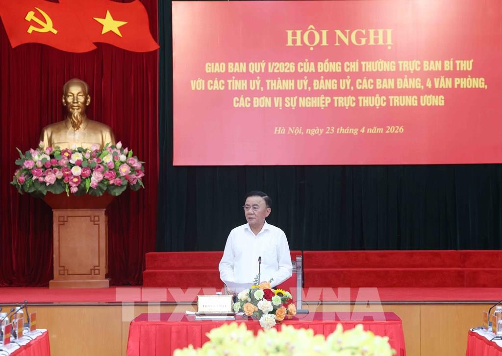 Sáng 23/4, tại Hà Nội, Ủy viên Bộ Chính trị, Thường trực Ban Bí thư Trần Cẩm Tú chủ trì giao ban Quý I/2026 với các tỉnh uỷ, thành uỷ, đảng uỷ, các ban đảng, 4 văn phòng, các đơn vị sự nghiệp trực thuộc Trung ương.