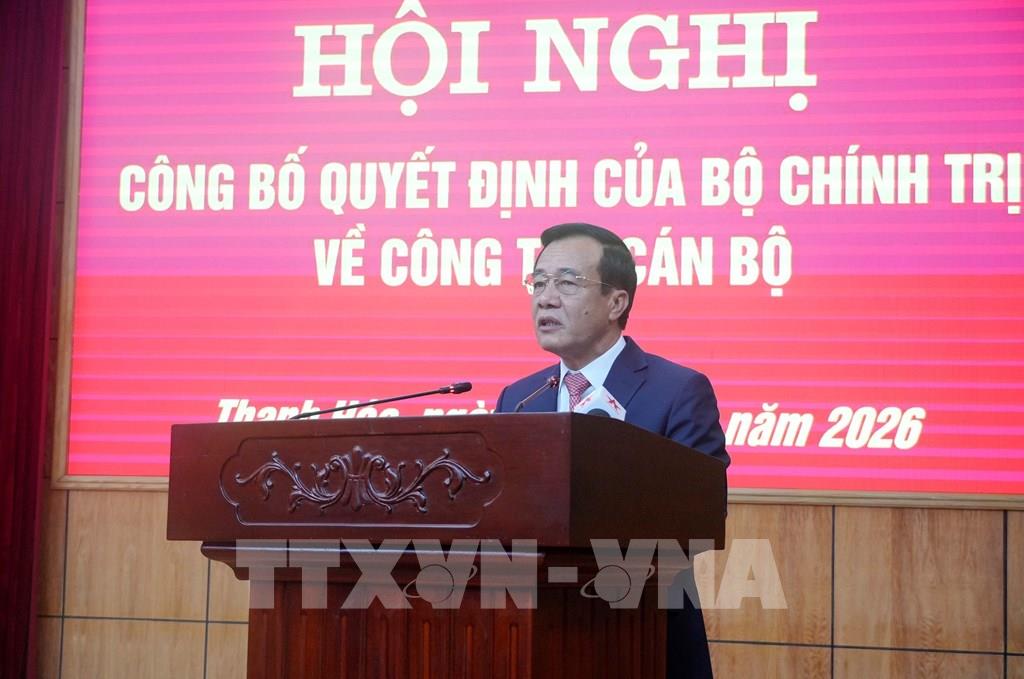 Thay mặt Bộ Chính trị, Phó Trưởng Ban Tổ chức Trung ương Hoàng Trung Dũng đã công bố quyết định của Bộ Chính trị về việc điều động, phân công, chỉ định Thượng tướng Lê Đức Thái, Ủy viên Trung ương Đảng, Ủy viên Quân ủy Trung ương, Thứ trưởng Bộ Quốc phòng, Trưởng đoàn đại biểu Quốc hội khóa XVI tỉnh Thanh Hóa thôi tham gia Quân ủy Trung ương; điều động, phân công, chỉ định tham gia Ban Chấp hành, Ban Thường vụ Tỉnh ủy và giữ chức vụ Bí thư Tỉnh ủy Thanh Hóa nhiệm kỳ 2025-2030.
