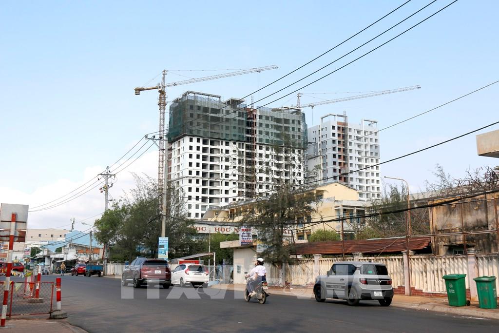 Dự án Khu chung cư nhà ở xã hội Phú Thịnh (phường Phan Thiết) đang được nhà đầu tư tập trung thi công. Ảnh: Nguyễn Thanh - TTXVN