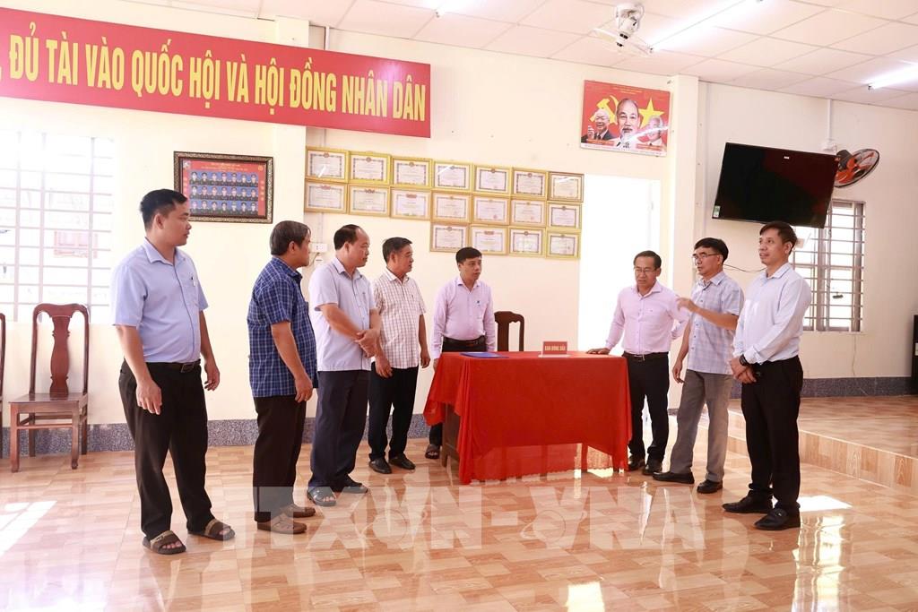 Lãnh đạo xã Bù Gia Mập kiểm tra công tác chuẩn bị bầu cử. Ảnh: K GỬIH-TTXVN