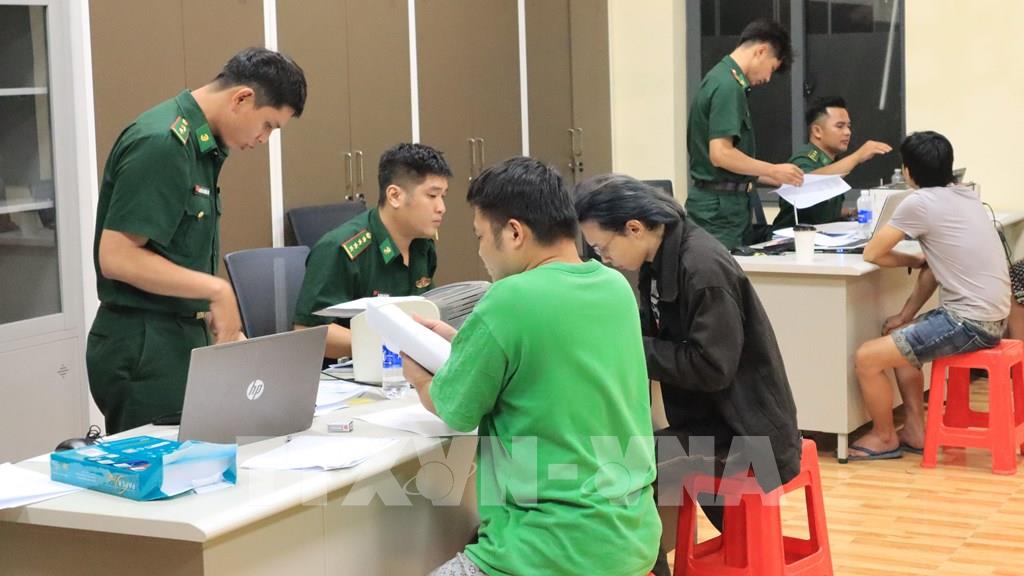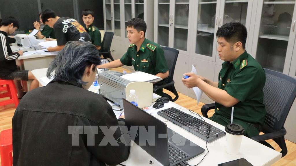 Cán bộ, chiến sĩ Bộ đội biên phòng tỉnh Đồng Nai ghi thông tin các công dân Việt Nam vừa được trao trả về nước. Ảnh: Nhật Bình – TTXVN
