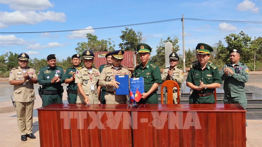 Lực lượng chức năng hai nước ký biên bản bàn giao 63 công dân Việt Nam. Ảnh: Nhật Bình – TTXVN