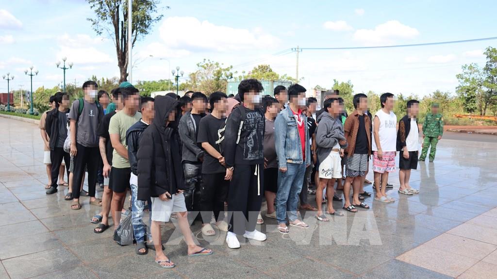 63 công dân Việt Nam được cơ quan chức năng Campuchia trao trả. Ảnh: Nhật Bình – TTXVN