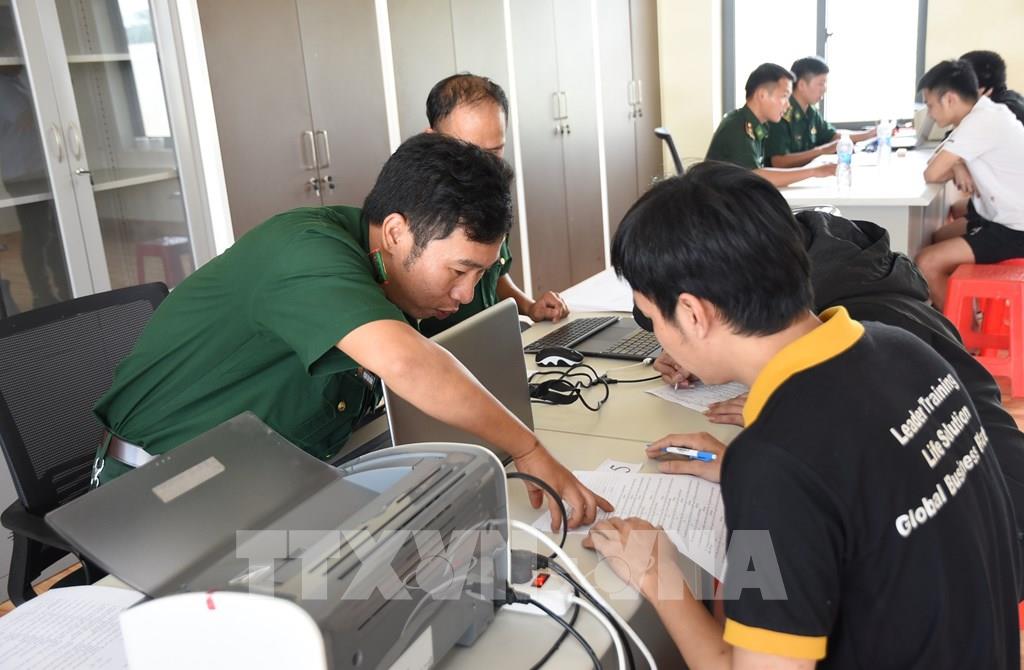 Lực lượng bộ đội biên phòng xác minh, điều tra ban ban đầu đối với những người vừa được trao trả về nước. Ảnh: Đậu Tất Thành – TTXVN