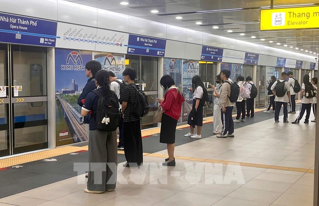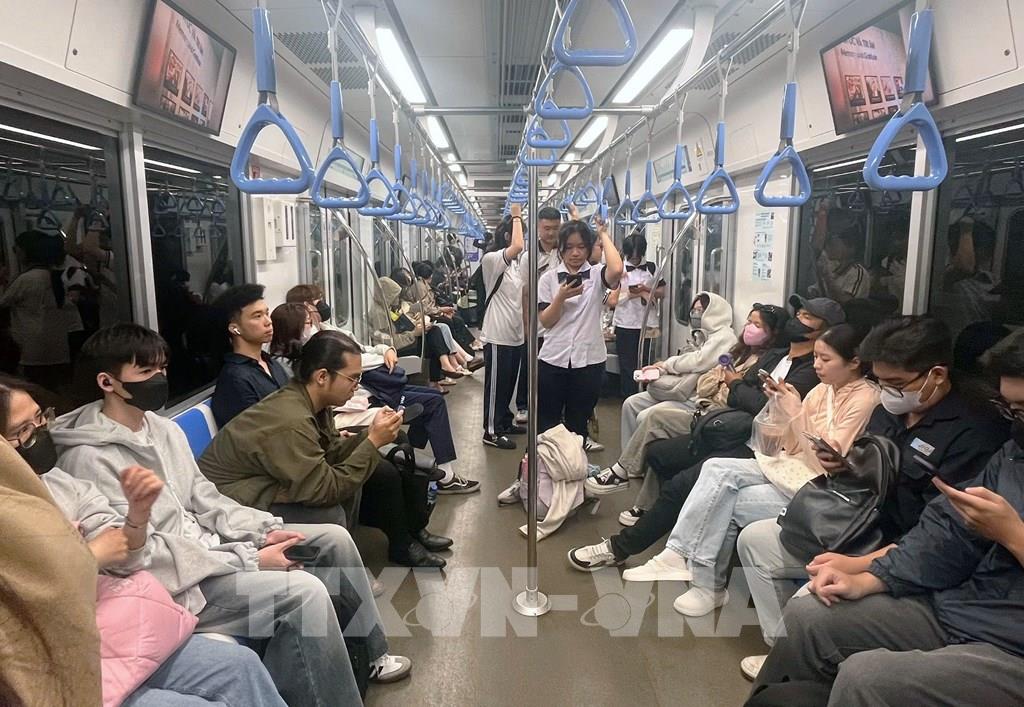 Đông đảo người lao động và sinh viên học sinh chọn đi lại bằng phương tiện công cộng metro nhằm thích ứng linh hoạt trước biến động của thị trường nhiên liệu. Ảnh: Thanh Vũ-TTXVN