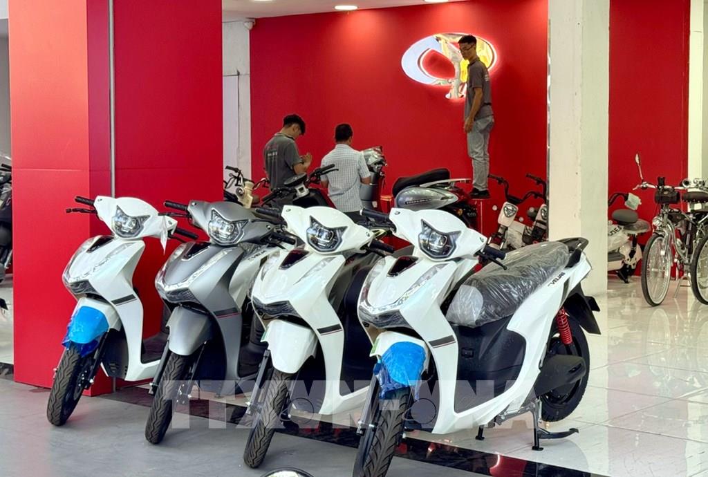 Cửa hàng xe máy điện trên đường Lý Thường Kiệt mới khai trương nhằm thích ứng linh hoạt trước biến động của thị trường nhiên liệu. Ảnh: Thanh Vũ-TTXVN