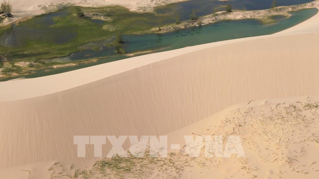 Từng đợt gió thổi cát bay tạo thành những triền cát lượn sóng đẹp mắt. Ảnh: Nguyễn Thành - TTXVN