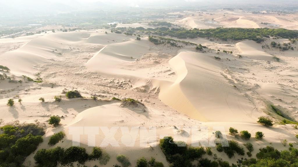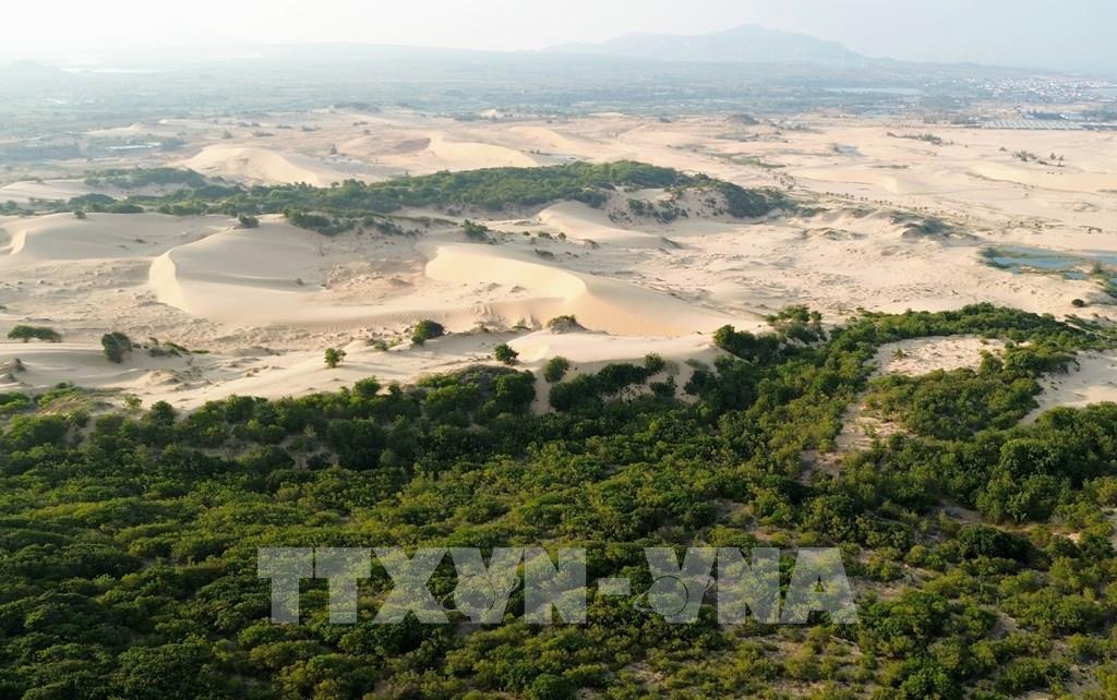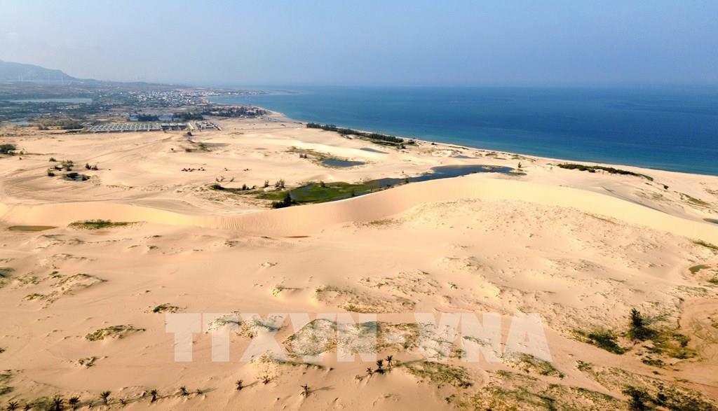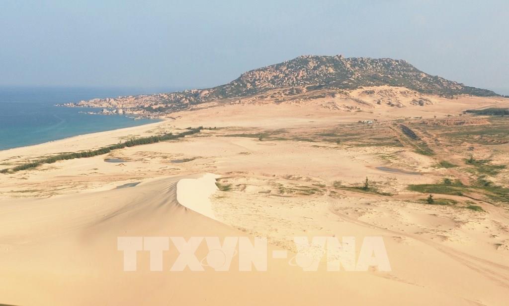 Những triền cát ven biển trải dài mênh mông tại khu vực Mũi Dinh tạo nên cảnh quan hoang sơ, ấn tượng. Ảnh: Nguyễn Thành - TTXVN