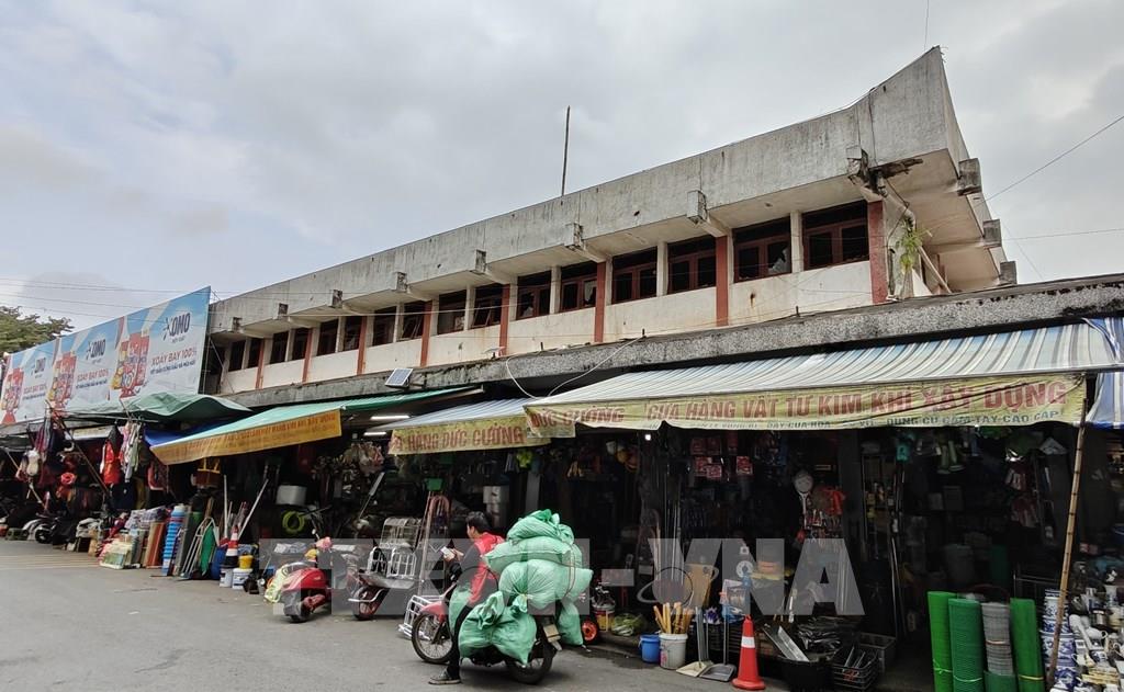 Nhiều tiểu thương tại chợ Nhớn, tỉnh Bắc Ninh, vẫn hoạt động. Ảnh: Thái Hùng - TTXVN