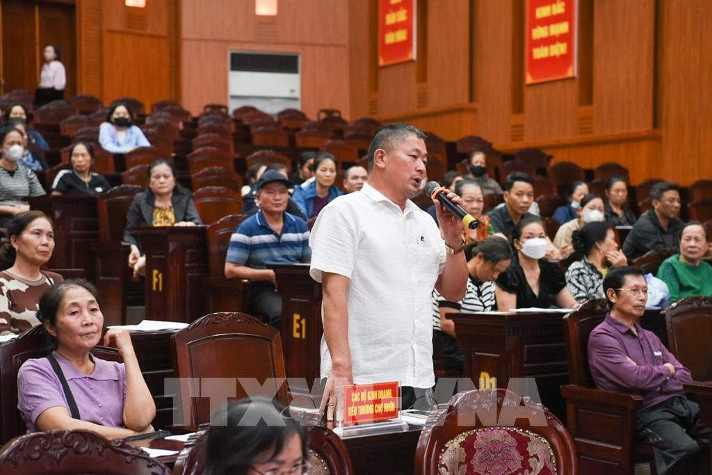 Các tiểu thương chợ Nhớn (Bắc Ninh) phát biểu tại buổi gặp mặt. Ảnh: Thái Hùng - TTXVN