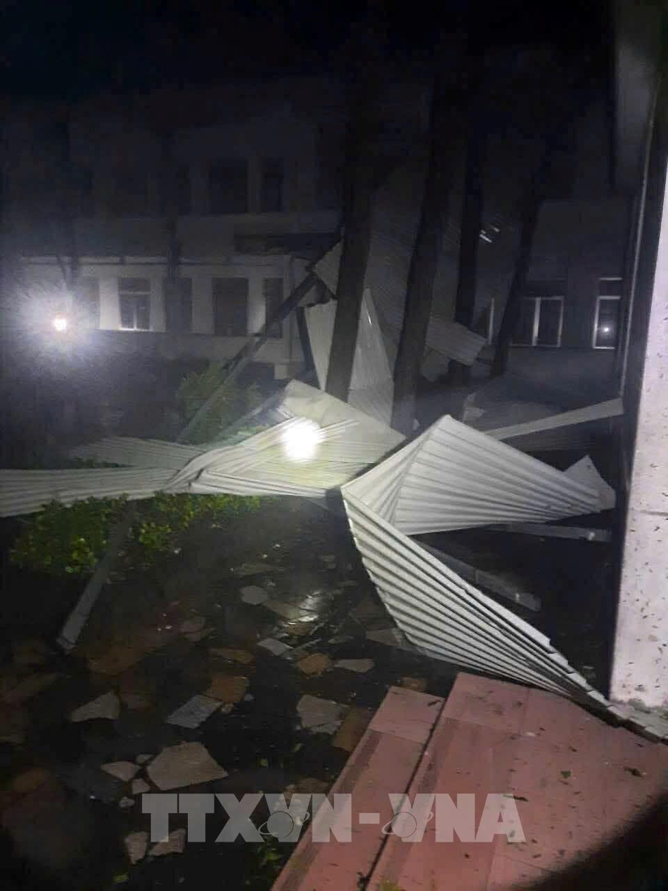 Bệnh viện da liễu Quy Nhơn bị thiệt hại do bão. Ảnh TTXVN phát