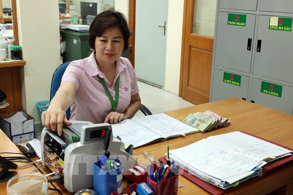 Hoạt động nghiệp vụ tại Phòng giao dịch Ngân hàng CSXH Bát Xát, Lào Cai. Ảnh: Trần Việt - TTXVN