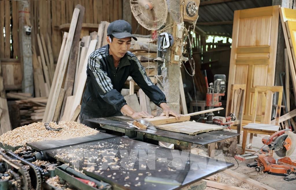 Có thêm vốn vay ưu đãi, gia đình anh Mai Văn Duy ở xã Xuân Quang, Lào Cai có điều kiện đầu tư máy làm nghề mộc dân dụng, tạo việc làm cho 4 lao động thường xuyên. Ảnh: Trần Việt - TTXVN