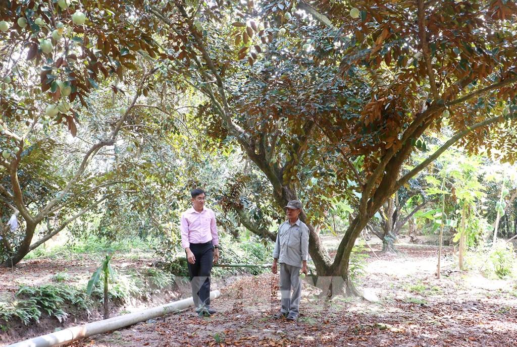 Ông Phạm Văn Hành (xã Lục Sỹ Thành, tỉnh Vĩnh Long) sử dụng nguồn vốn vay chính sách để đầu tư cải tạo và trồng mới vườn cây vú sữa. Ảnh: Lê Thúy Hằng - TTXVN