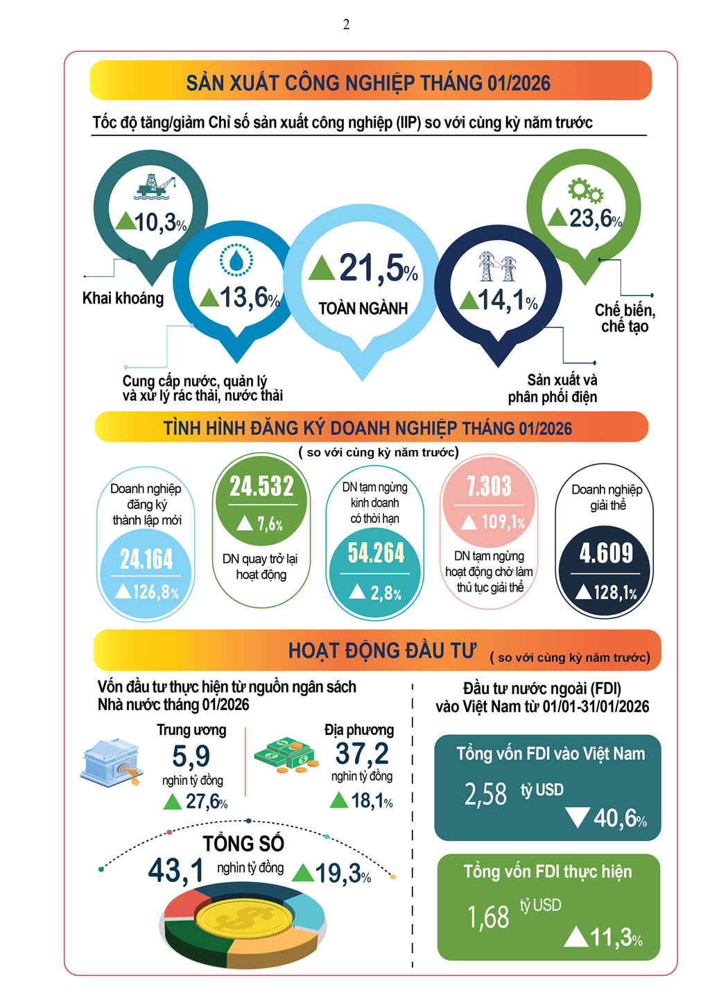 Tình hình kinh tế - xã hội tháng 1 tiếp tục xu hướng tích cực, đạt những kết quả quan trọng trên nhiều lĩnh vực.