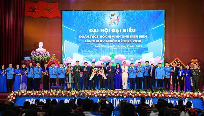 Ban Chấp hành Tỉnh đoàn Điện Biên khóa XV, nhiệm kỳ 2025 - 2030, ra mắt Đại hội. Ảnh: Phan Quân - TTXVN