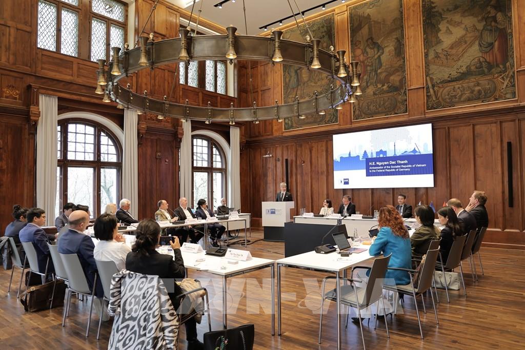 Đại sứ Nguyễn Đắc Thành phát biểu khai mạc Toạ đàm. Ảnh: Thu Hằng - PV TTXVN tại Đức