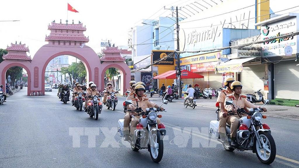 Lực lượng Công an tỉnh An Giang tham dự lễ ra quân. Ảnh: TTXVN phát