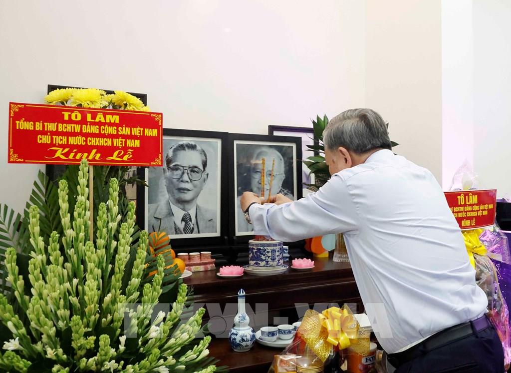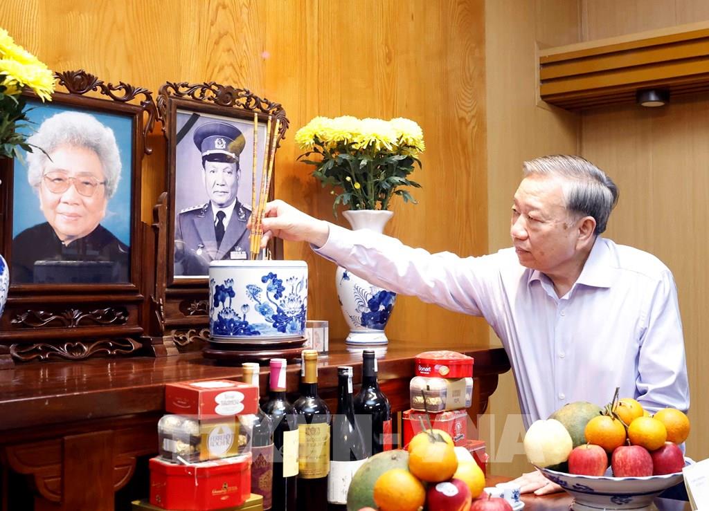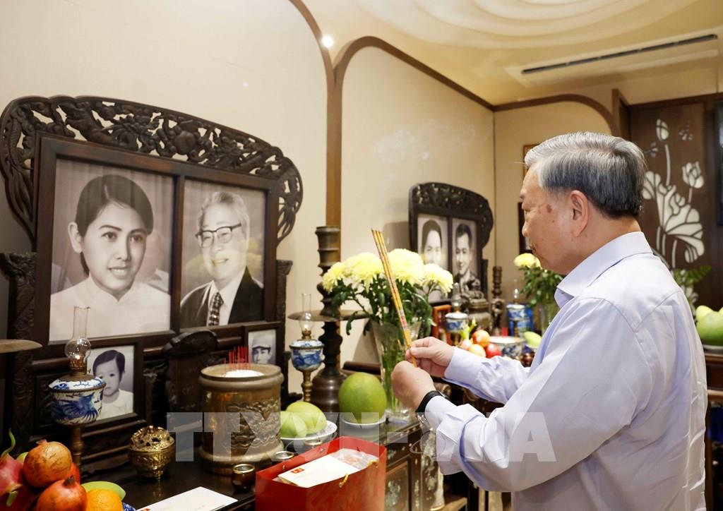 Tổng Bí thư, Chủ tịch nước Tô Lâm dâng hương tưởng nhớ Đại tướng Lê Đức Anh, nguyên Chủ tịch nước. Ảnh: Thống Nhất – TTXVN