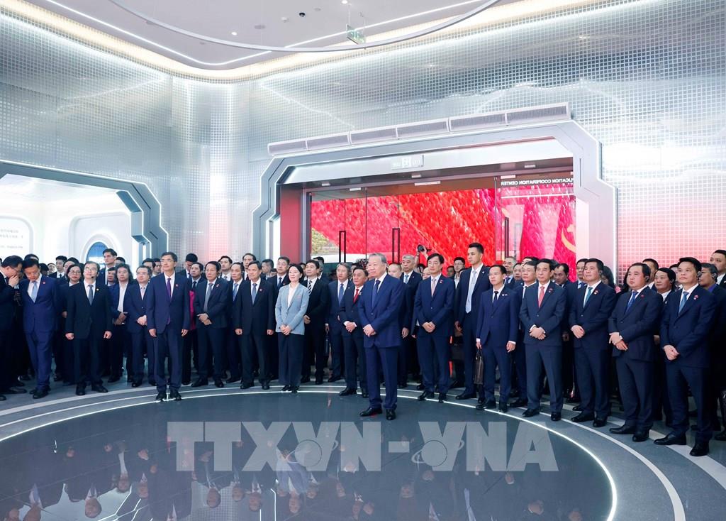 Tổng Bí thư, Chủ tịch nước Tô Lâm và các đại biểu tại Trung tâm hợp tác ứng dụng AI Trung Quốc - ASEAN. Ảnh: Thống Nhất - TTXVN