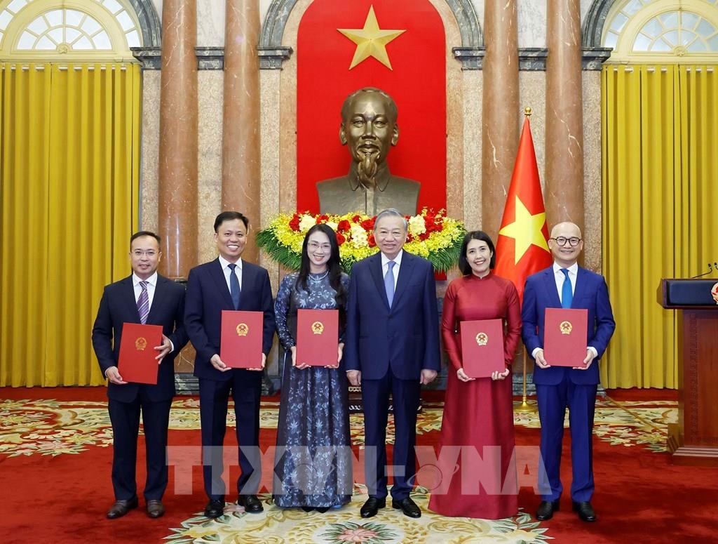 Tổng Bí thư, Chủ tịch nước Tô Lâm trao Quyết định bổ nhiệm cho 5 Đại sứ nước Cộng hoà xã hội Chủ nghĩa Việt Nam tại nước ngoài. Ảnh: Thống Nhất – TTXVN