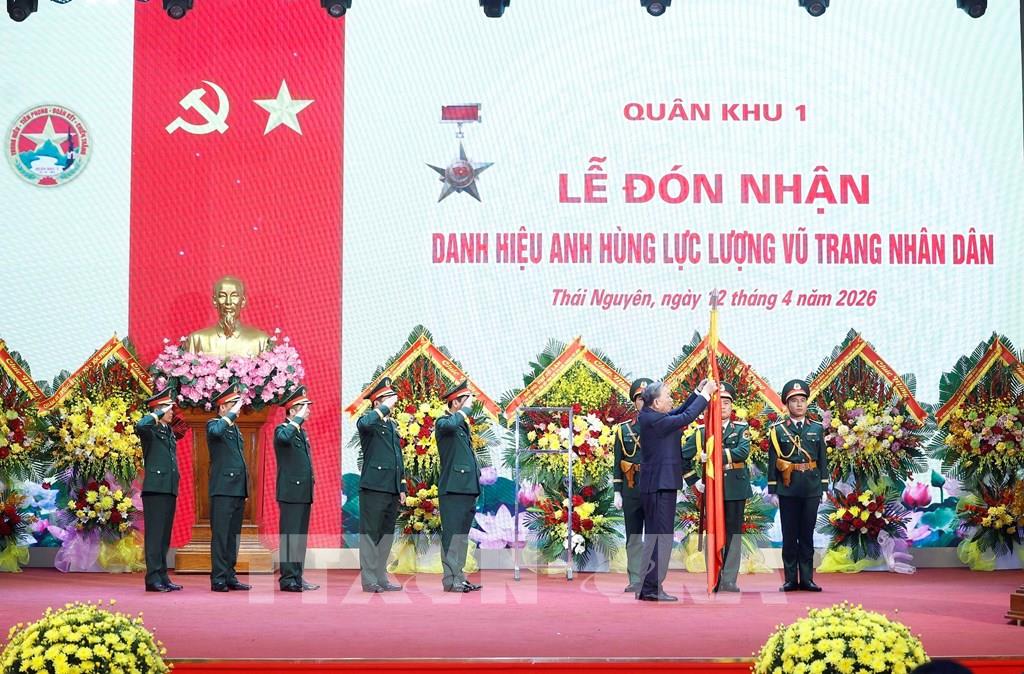 Trình bày báo cáo thành tích tại buổi lễ, Trung tướng Trương Mạnh Dũng, Tư lệnh Quân khu 1 cho biết, trải qua hơn 80 năm xây dựng, chiến đấu và trưởng thành, Lực lượng vũ trang Quân khu 1 cùng nhân dân miền Bắc đã phát huy cao độ chủ nghĩa anh hùng cách mạng, là biểu tượng sáng ngời của ý chí quật cường, lòng trung thành vô hạn với Đảng, với Tổ quốc và nhân dân. Với những chiến công và thành tích tiêu biểu đã đạt được trong hơn 80 năm qua, Lực lượng vũ trang Quân khu 1 vinh dự được Đảng, Nhà nước tặng thưởng 1 Huân chương Sao vàng, 2 Huân chương Hồ Chí Minh, 1 Huân chương Độc lập hạng Nhì; 2 Huân chương Quân công hạng Nhất, 1 Huân chương Quân công hạng Ba và 2 Huân chương Bảo vệ Tổ quốc...Tại buổi lễ, thay mặt lãnh đạo Đảng, Nhà nước, Quân ủy Trung ương, Tổng Bí thư, Chủ tịch nước Tô Lâm đã trao tặng danh hiệu “Anh hùng Lực lượng vũ trang nhân dân” cho Quân khu 1. Đây là phần thưởng cao quý của Đảng, Nhà nước và nhân dân, ghi nhận những thành tích đặc biệt xuất sắc của các thế hệ cán bộ, chiến sĩ Lực lượng vũ trang Quân khu 1 trong hơn 80 năm xây dựng, chiến đấu và trưởng thành.