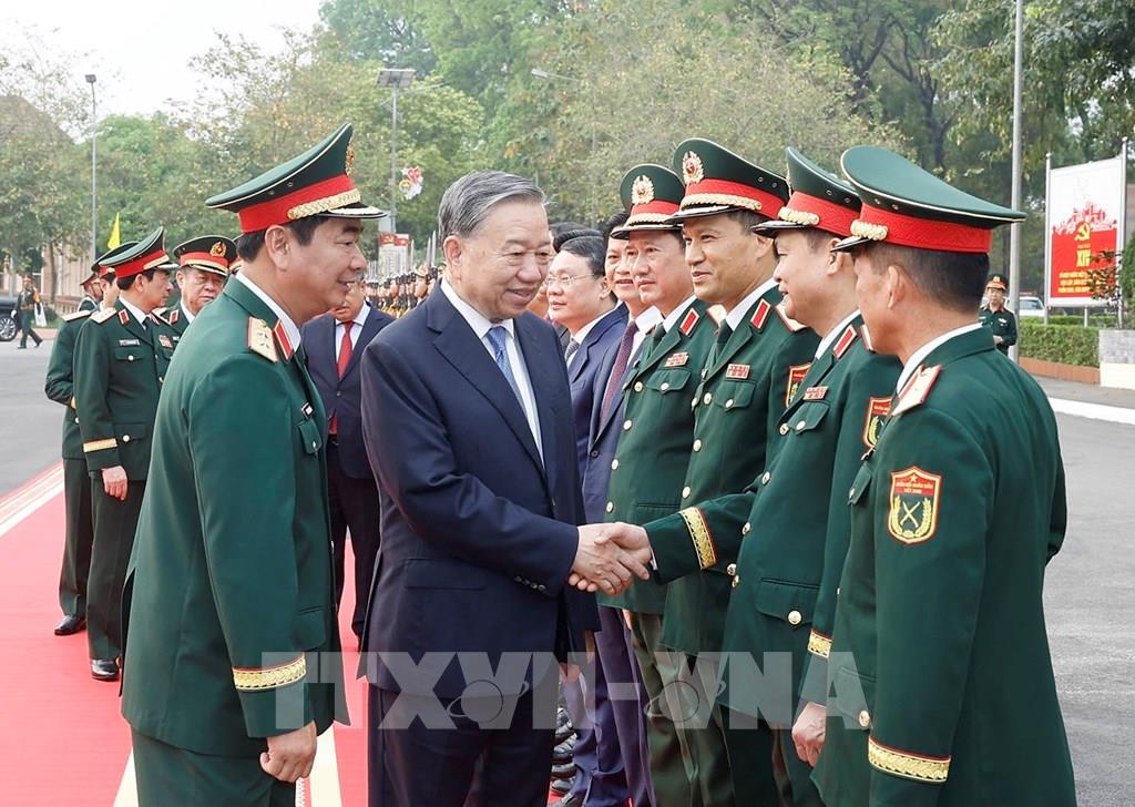 Lễ đón Tổng Bí thư, Chủ tịch nước Tô Lâm, Bí thư Quân uỷ Trung ương đến dự buổi lễ. Ảnh: Thống Nhất - TTXVN